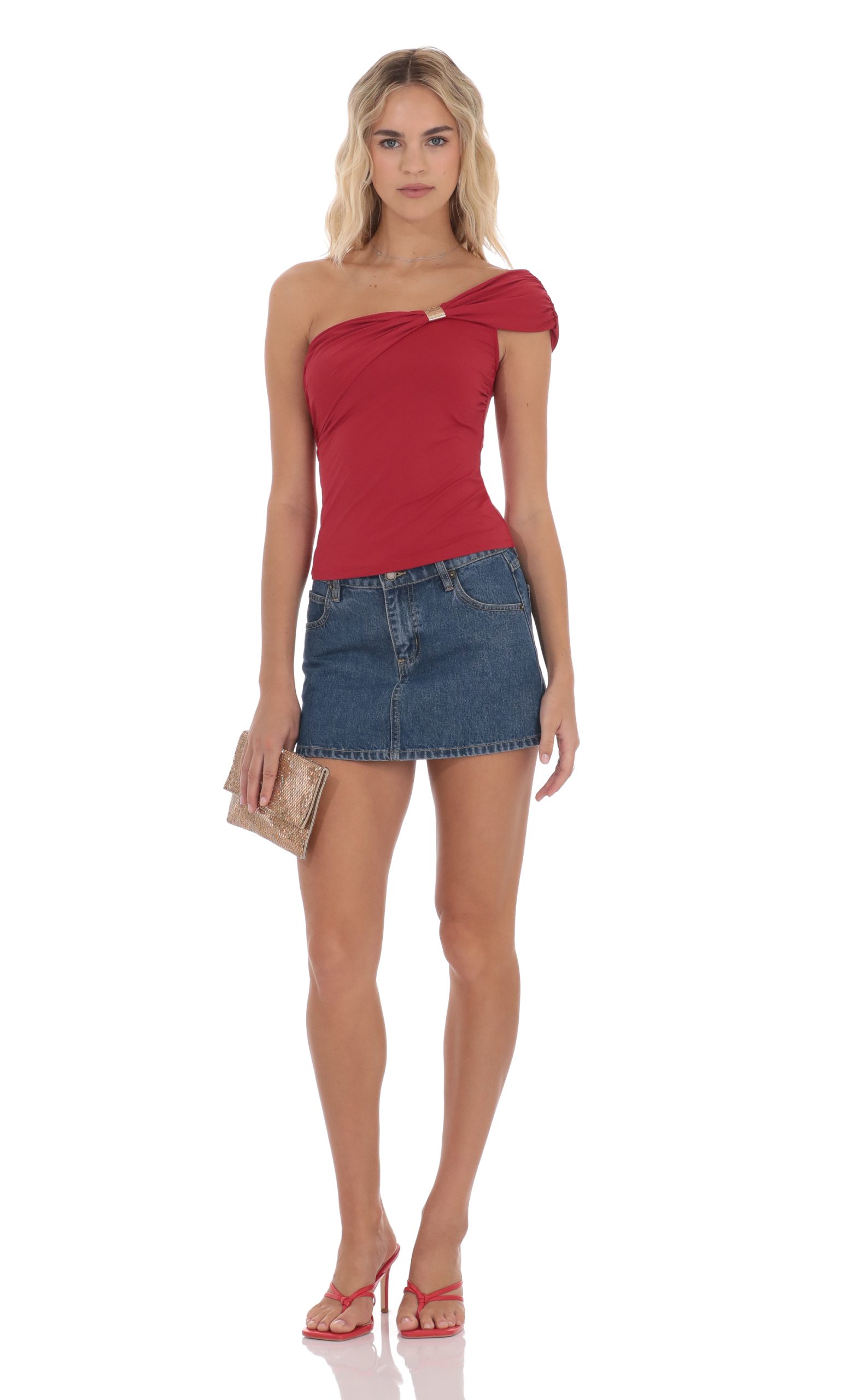 LUCY IN THE SKY Women’s Embellished Capped One Shoulder Top In Red | Red