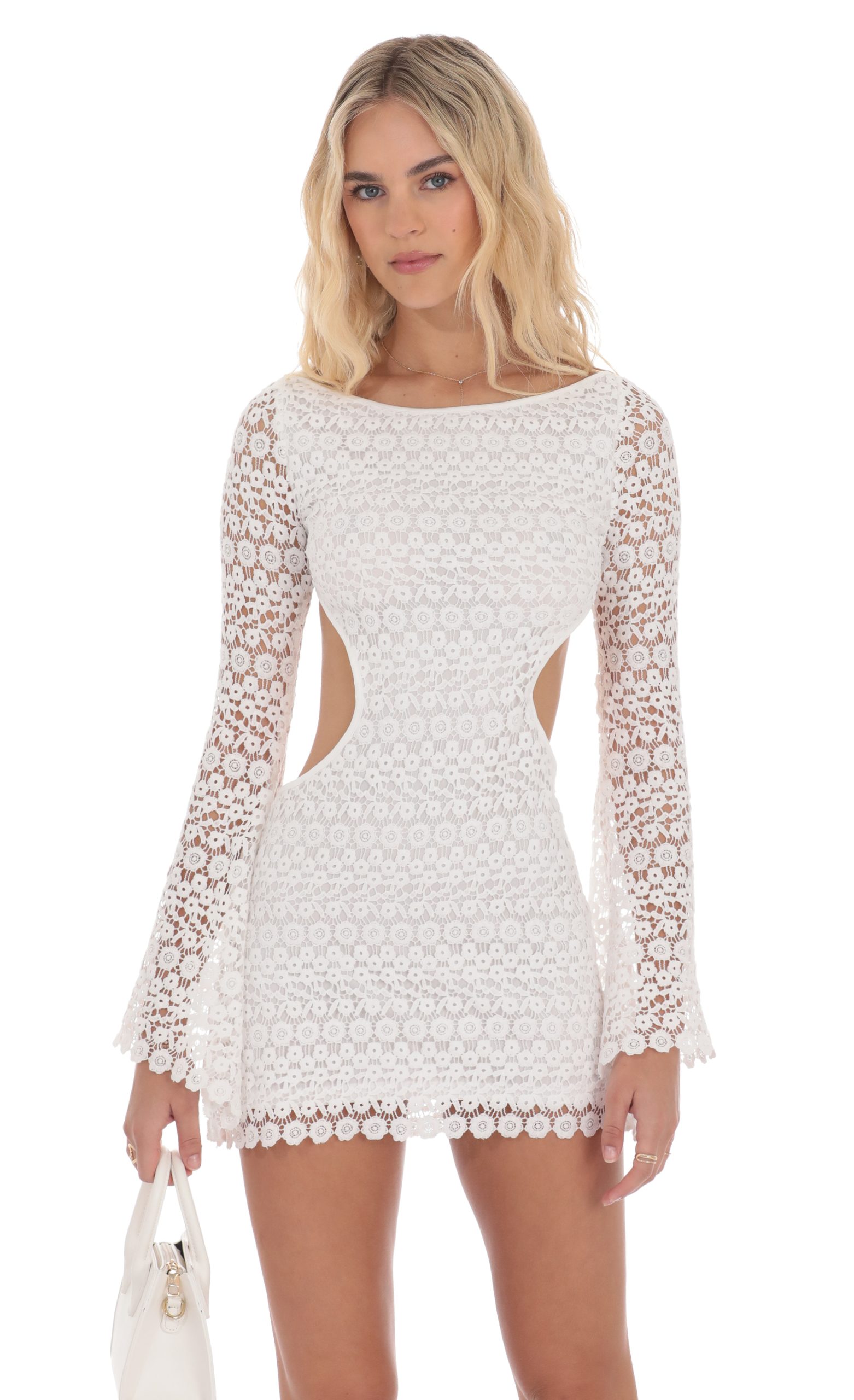 LUCY IN THE SKY Women’s Floral Crochet Long Sleeve Dress In White | White