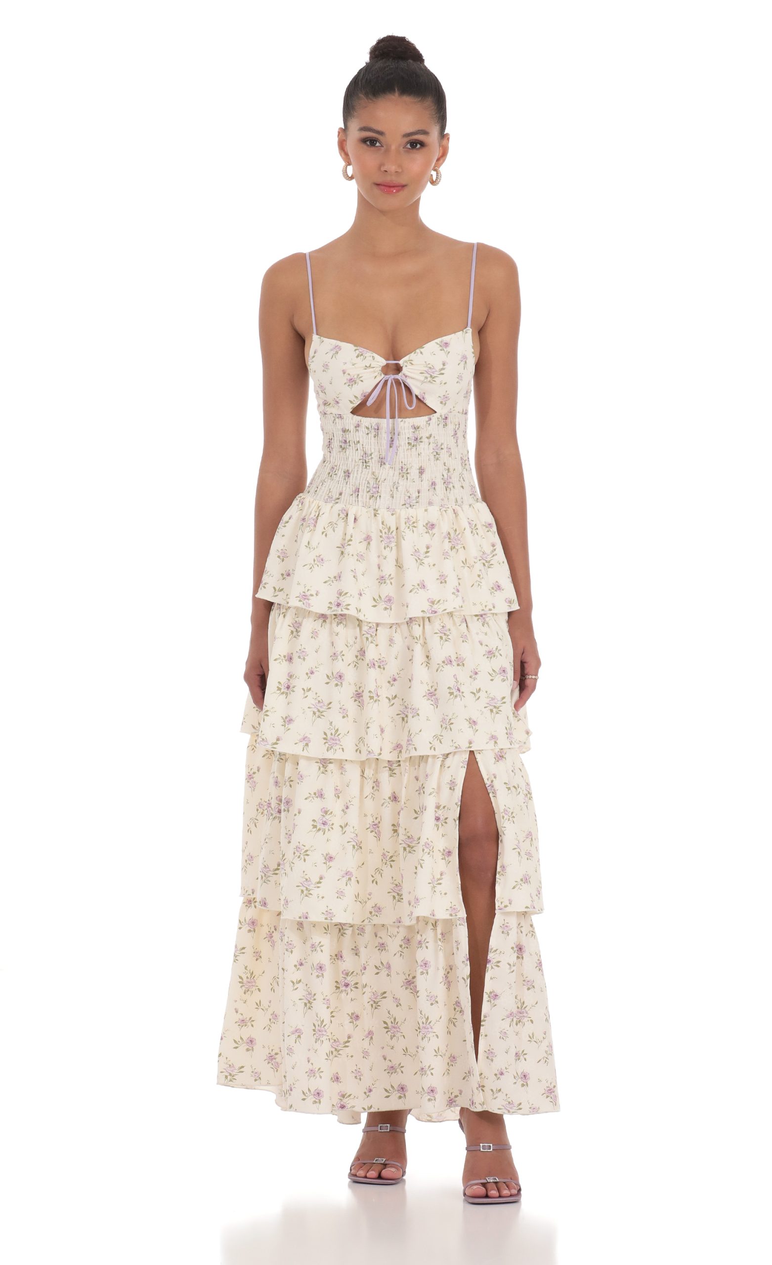 LUCY IN THE SKY Women’s Floral Cutout Ruffle Maxi Dress In Cream | Cream