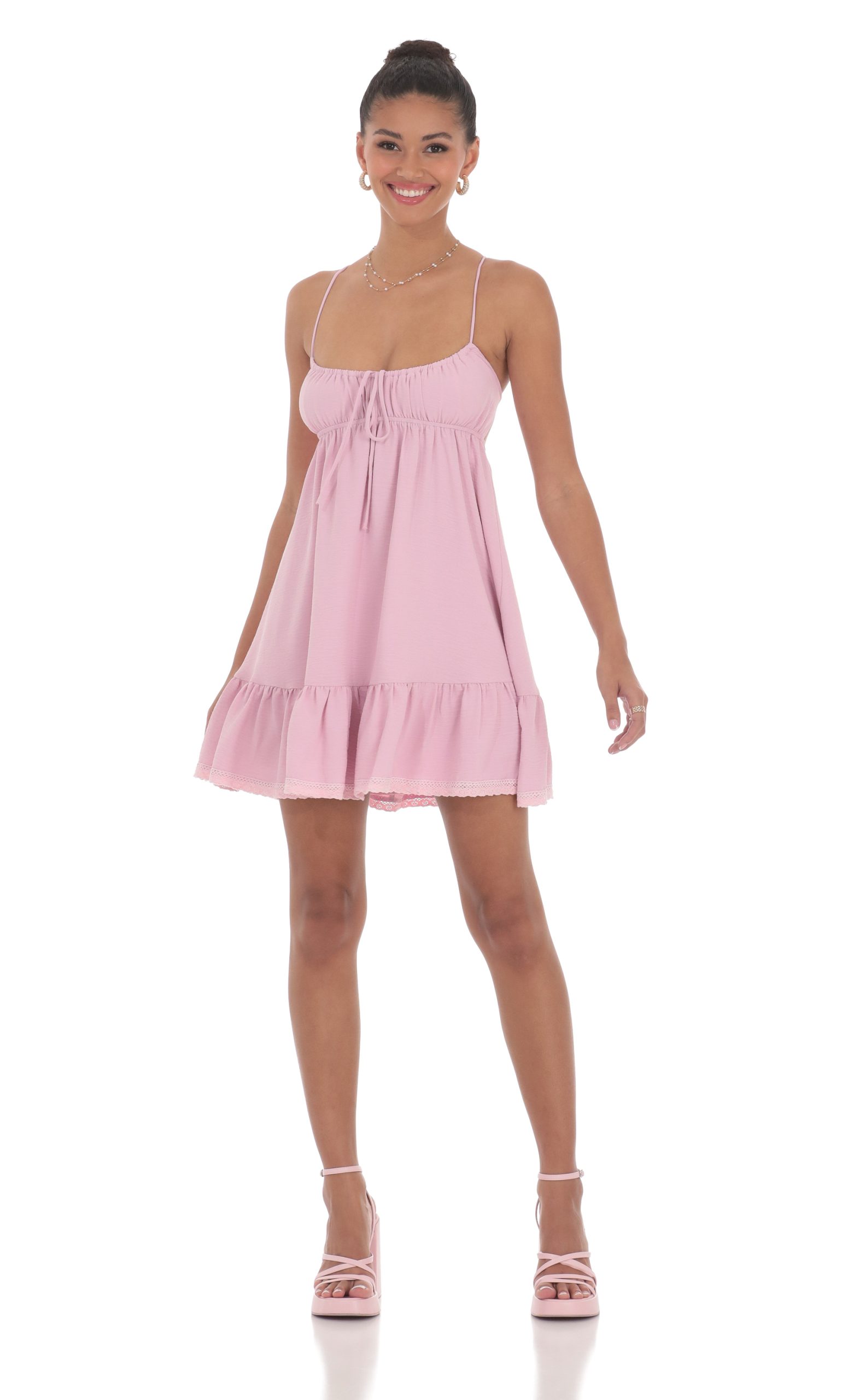 LUCY IN THE SKY Women’s Front Tie Babydoll Dress In Pink | Pink