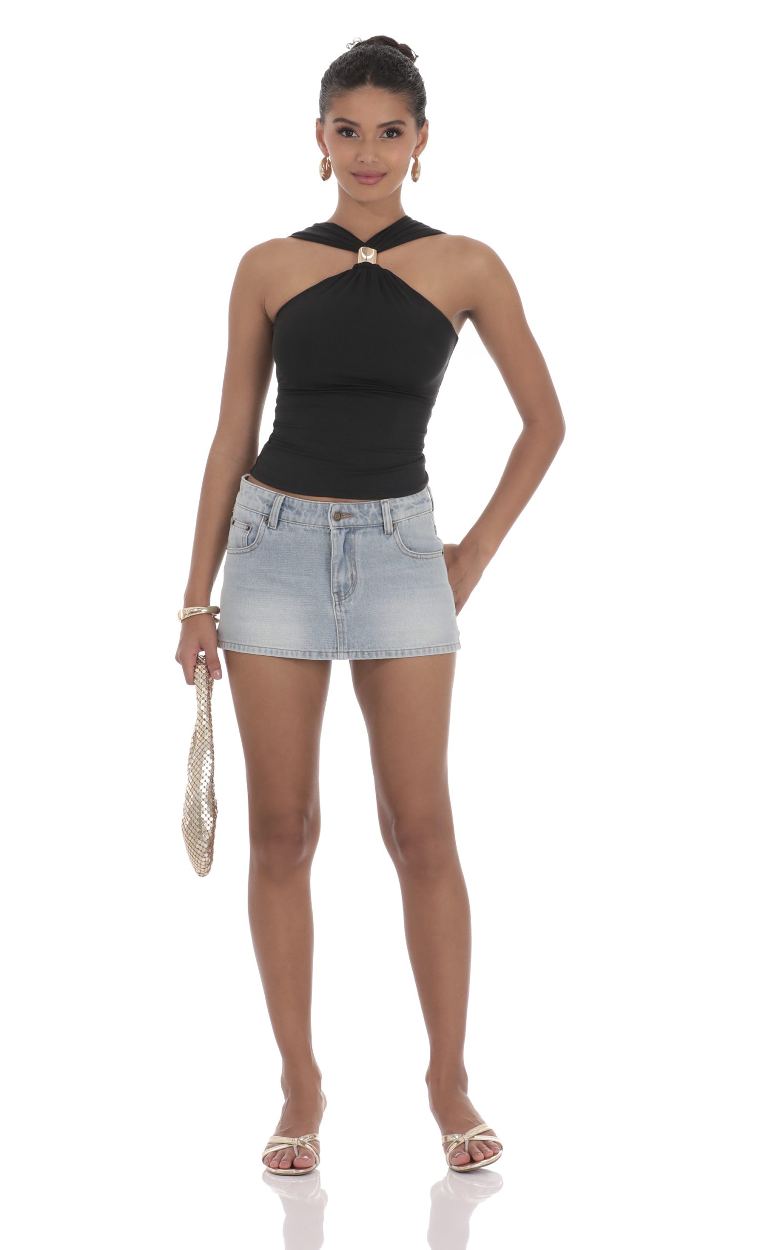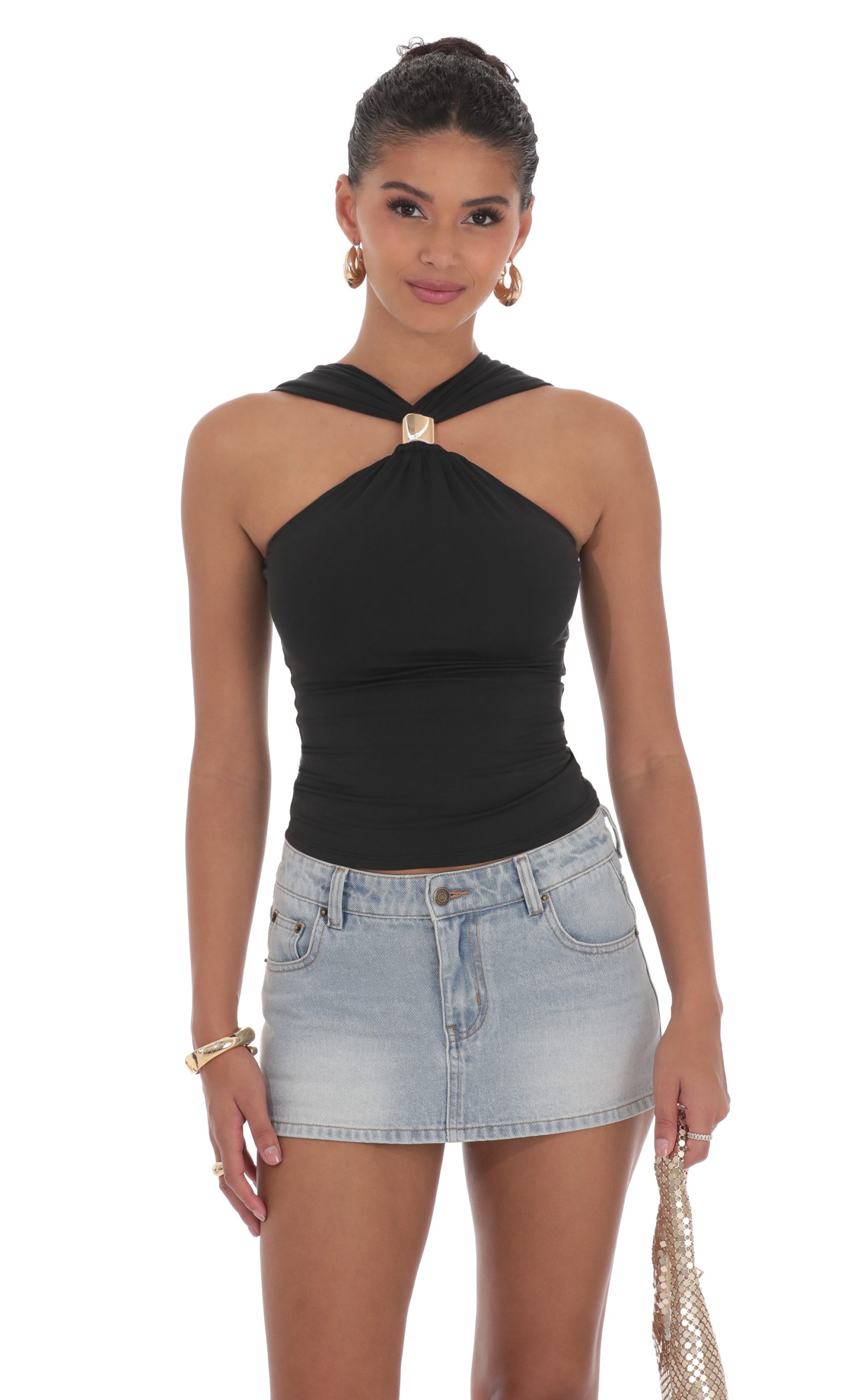LUCY IN THE SKY Women’s Gold Embellished Top In Black | Black