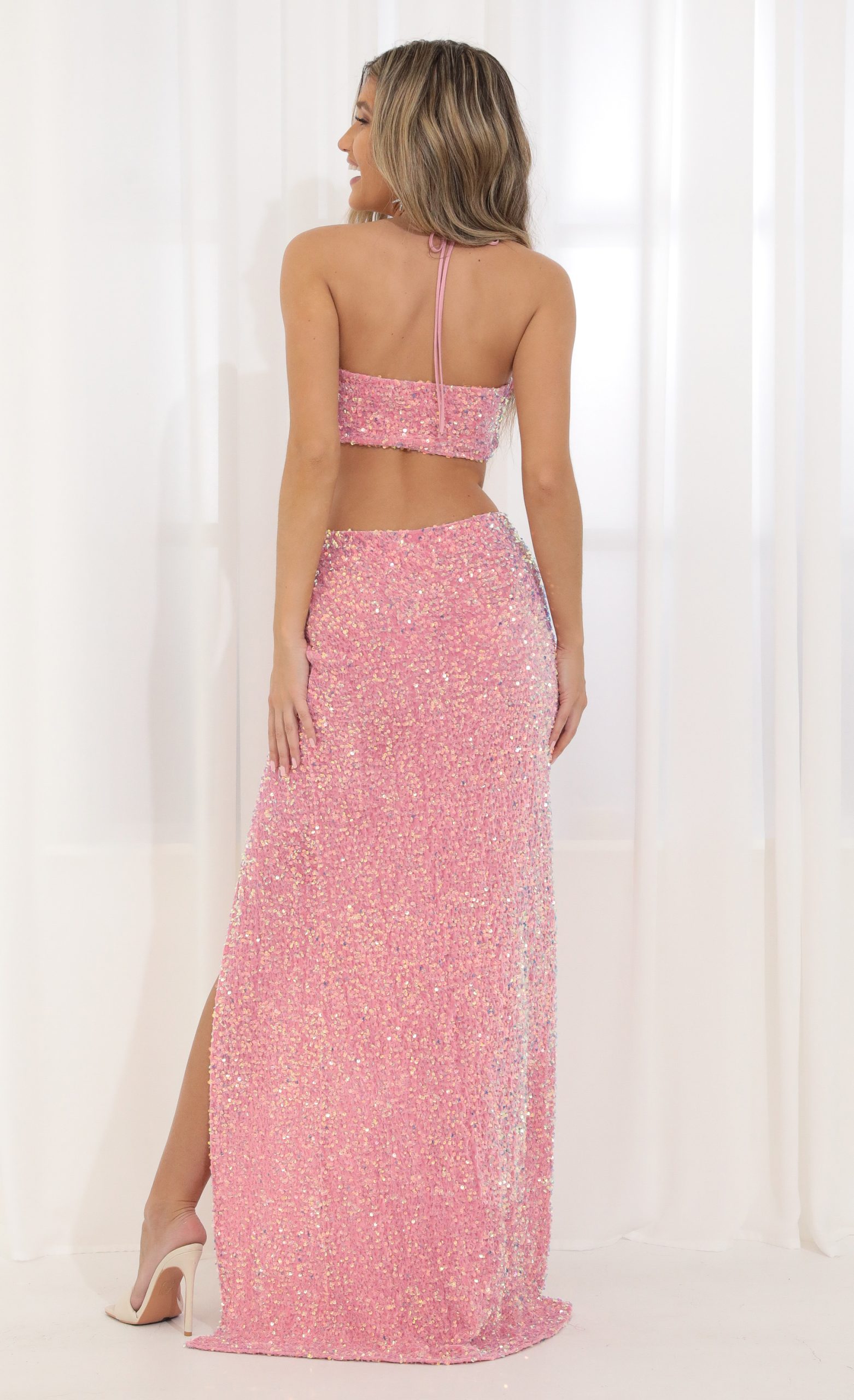LUCY IN THE SKY Women’s Halter Sequin Maxi Dress In Pink | Pink