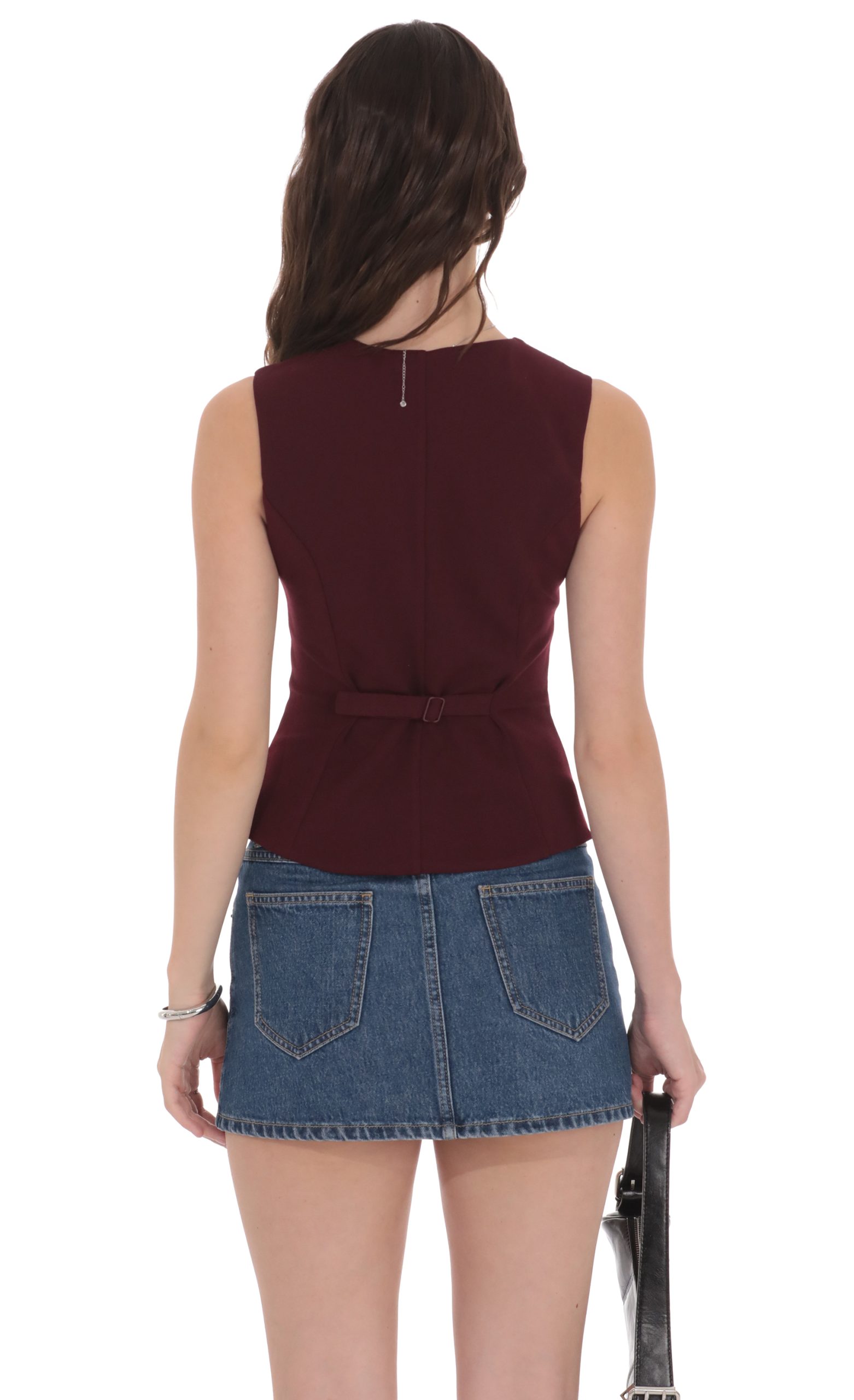 LUCY IN THE SKY Women’s High Neck Vest In Burgundy | Burgundy