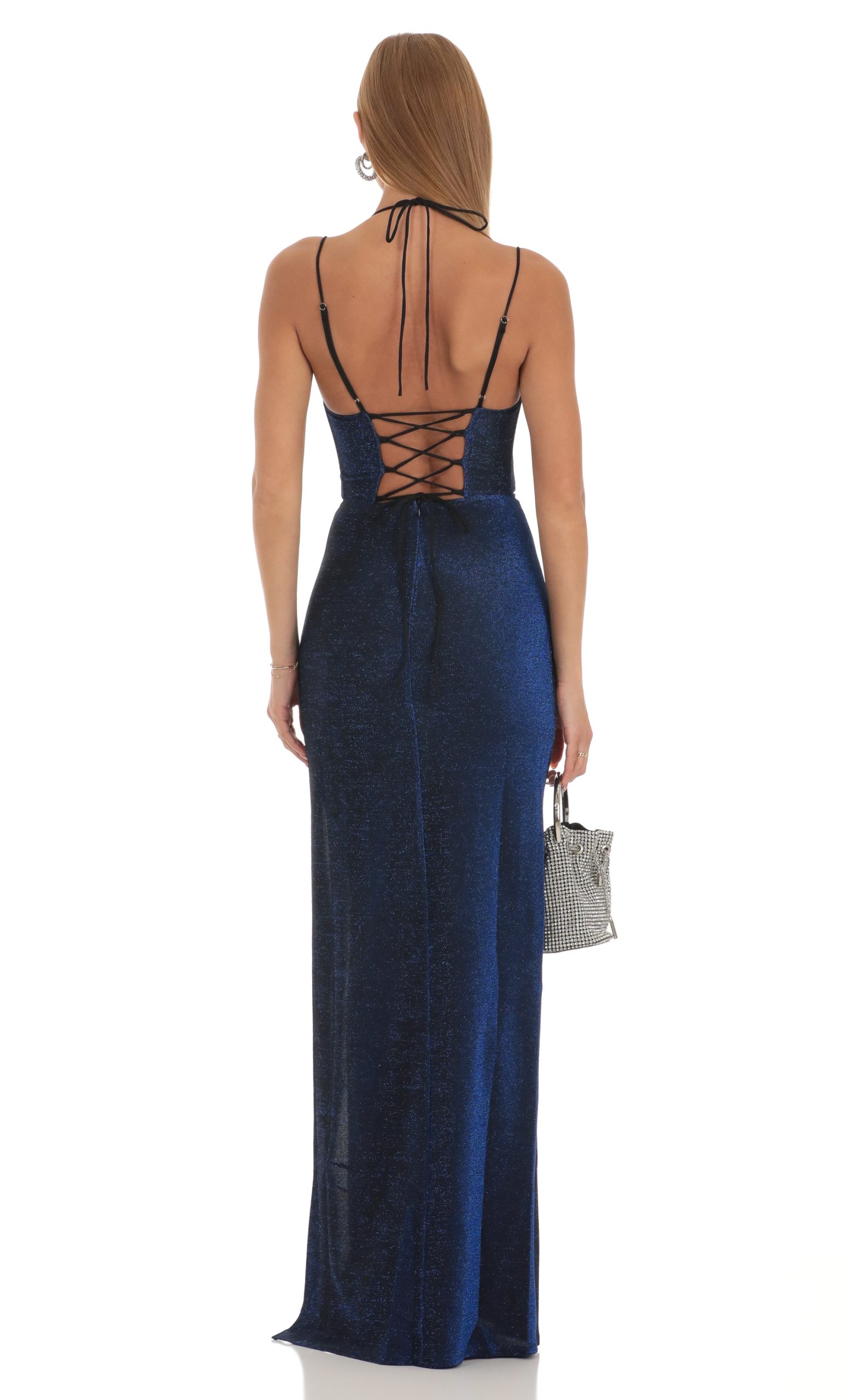 LUCY IN THE SKY Women’s Knit Corset Maxi Dress In Blue | Blue