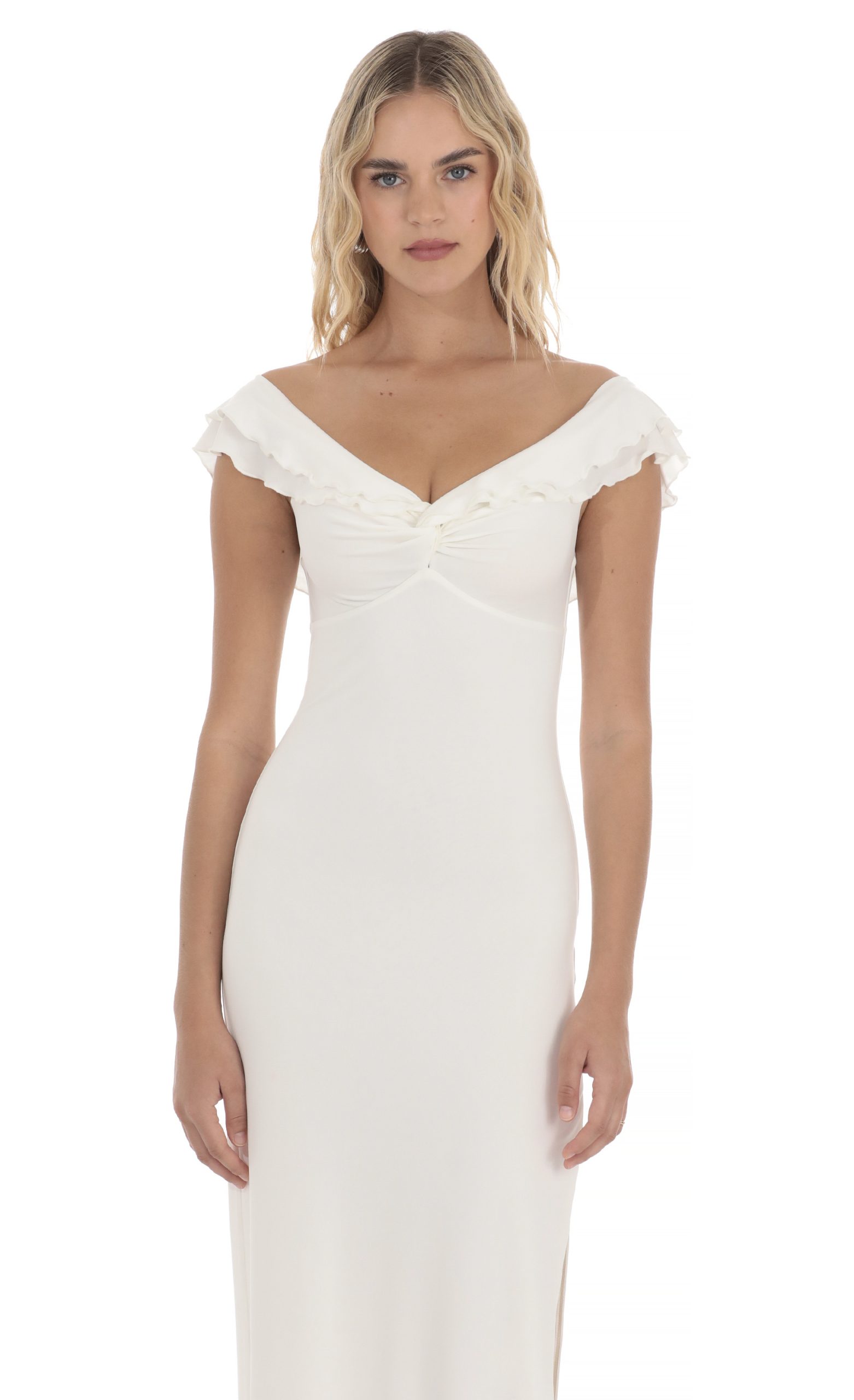 LUCY IN THE SKY Women’s Off Shoulder Twist Maxi Dress In White | White