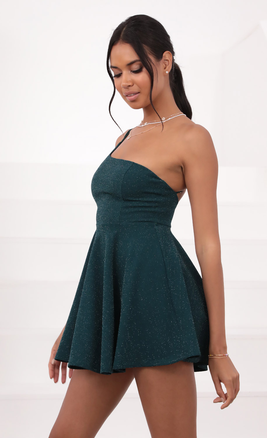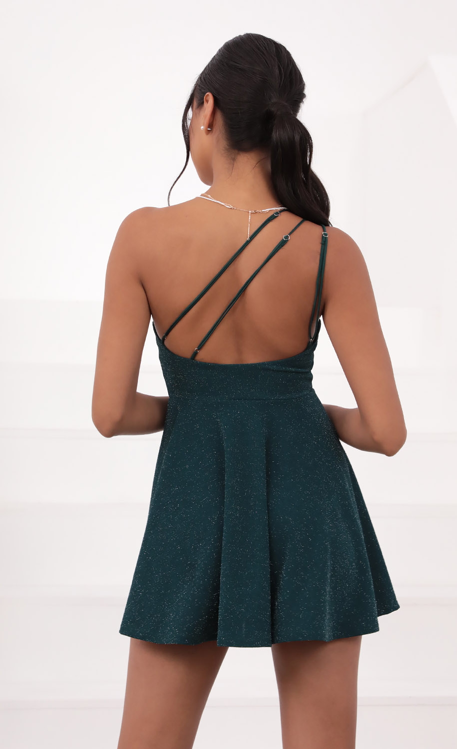 All eyes on you in this one shoulder dress. Carefully crafted with a one shoulder neckline, three asymmetric shoulder straps and an A