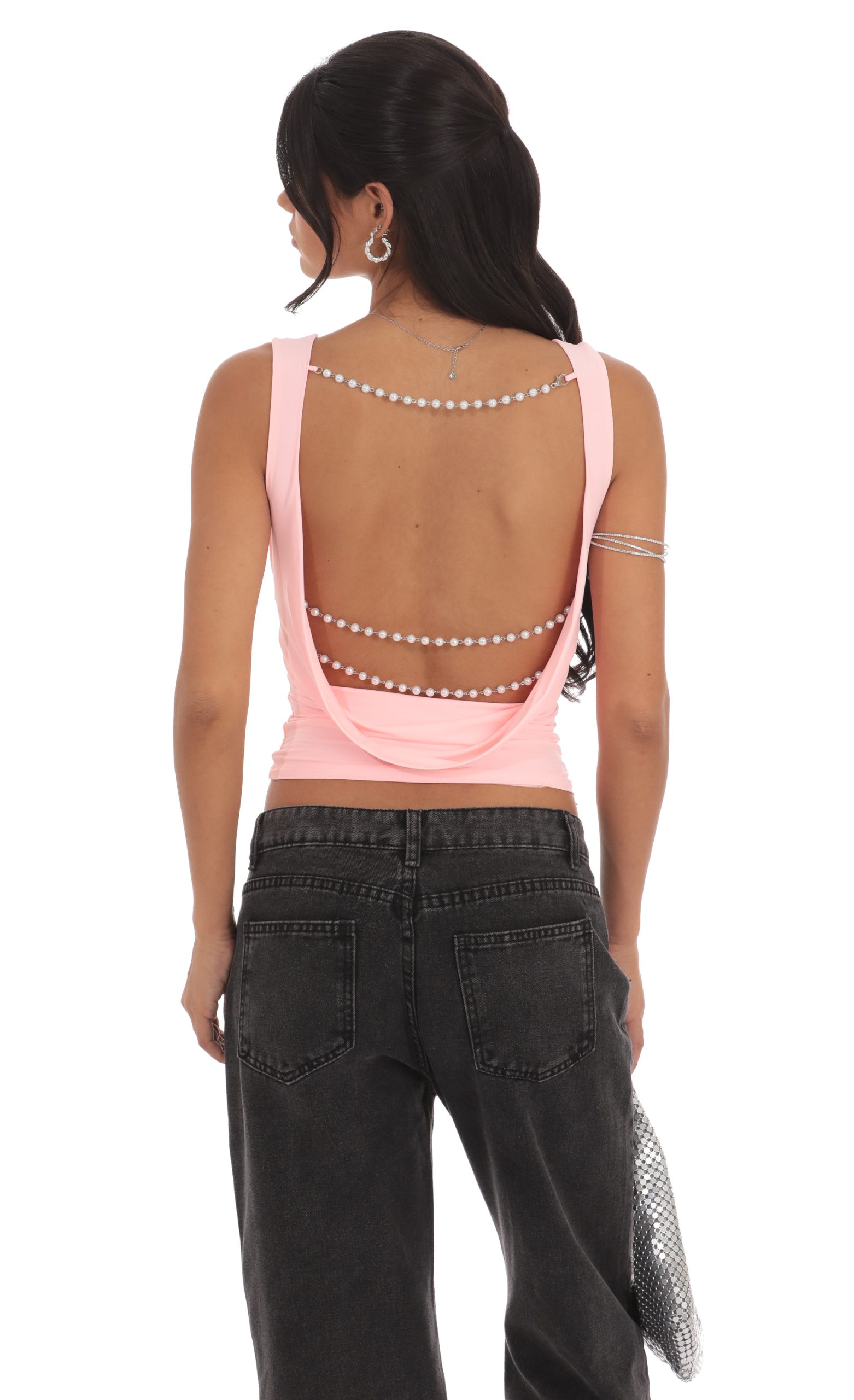 LUCY IN THE SKY Women’s Open Back Pearl Top In Pale Pink | Pale Pink