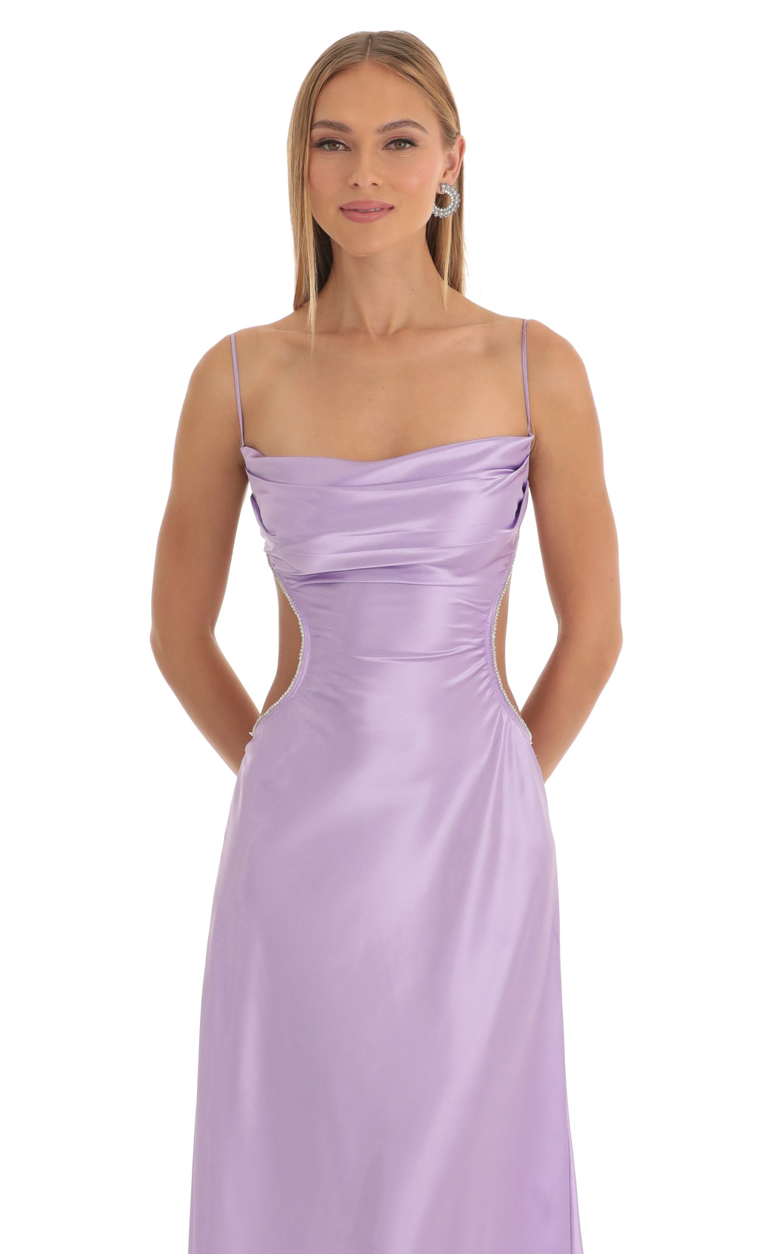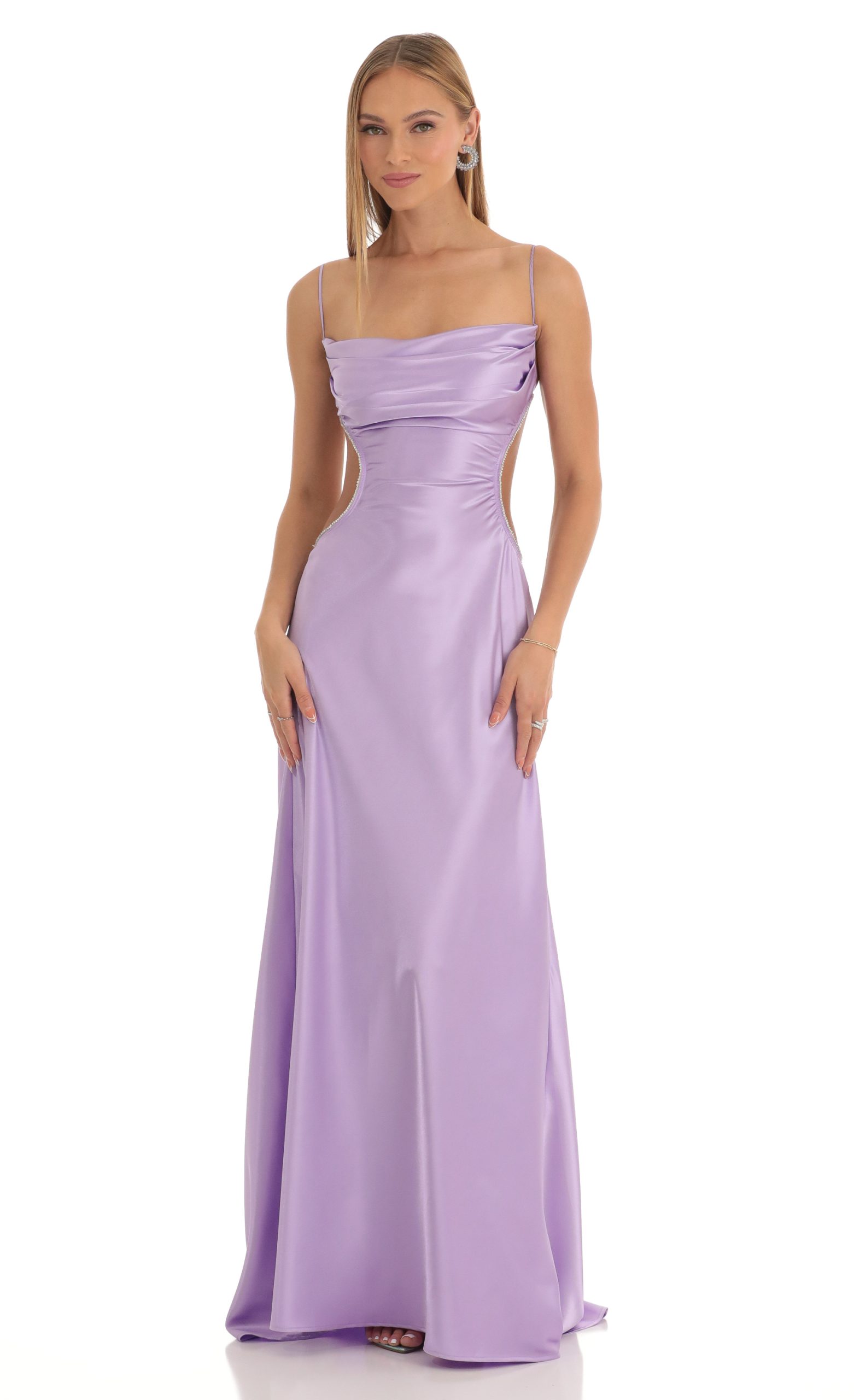 LUCY IN THE SKY Women’s Satin Rhinestone Maxi Dress In Purple | Purple