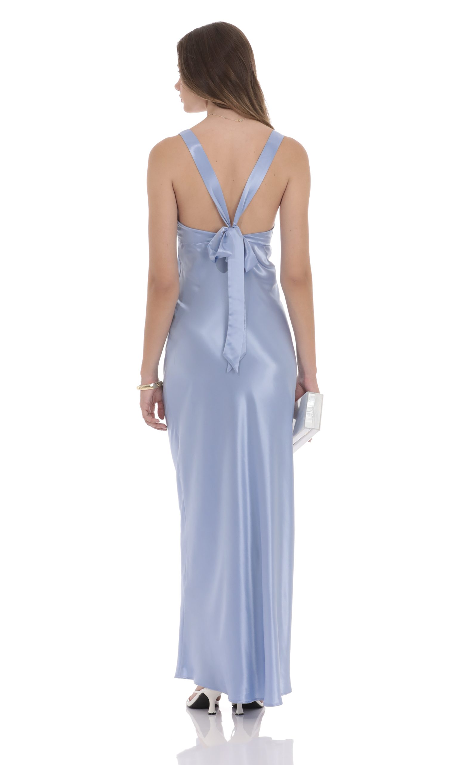 LUCY IN THE SKY Women’s Satin V-neck Maxi Dress In Sky Blue | Sky Blue