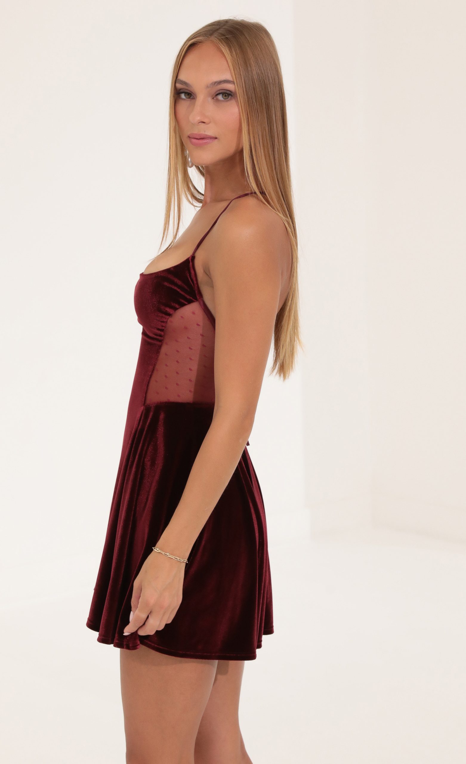 – Cutout Made in Dotted Mesh Fabric.